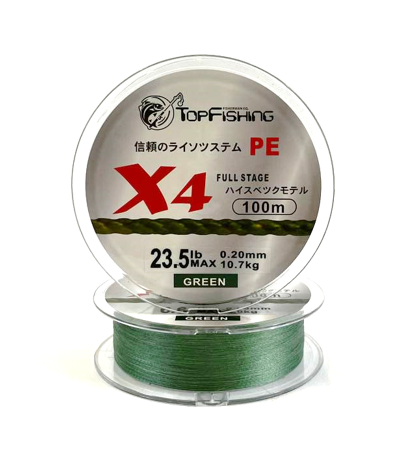 Плетеный шнур Top Fishing PEX4 Custom 100м Green - ваш надежный партнер в мире рыбалки!
