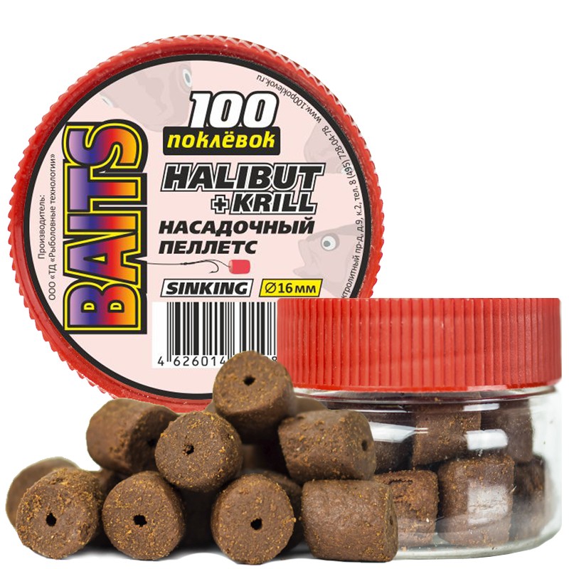 Пеллетс для насадки Halibit+Krill тонущие гранулы, 16 мм; 75 мл.