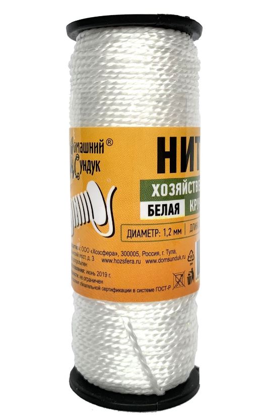 Нить хозяйственная Домашний Сундук крученая d1,2мм L50м белая