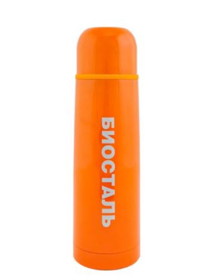 Термос Biostal 1,0л c узким горлом с кнопкой оранжевый