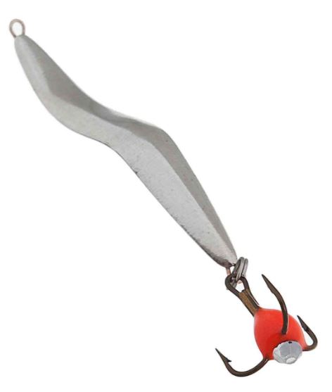 Наличие в форме дополнительных изгибов в горизонтальной плоскости напрямую влияет на игру зимней приманки, за счет чего увеличивается сектор облова и частота хаотических движений. Это провоцирует хищника на мгновенную хватку. Очень уловистая блесна. Блесна оснащена тройником "Mustad".
