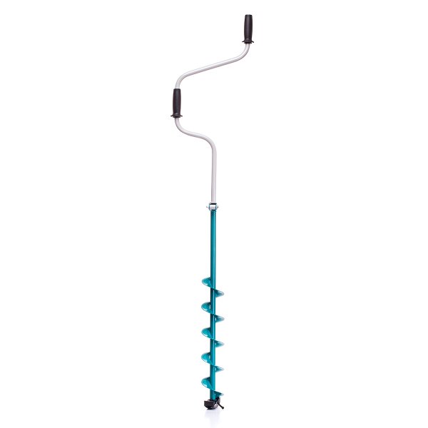 Основное и единственное отличие двуручных ледобуров от классических – верхняя рукоятка ледобура смещена относительно оси ледобура на 130 мм, а нижняя на 150 мм. Такое расположение рукояток позволяет вращать ледобур одновременно двумя руками, тем самым, увеличивая скорость бурения лунок во льду. Кроме того, существенно уменьшаются габариты ледобура в транспортном положении. По всем остальным характеристикам двуручные ледобуры полностью соответствуют классическим.