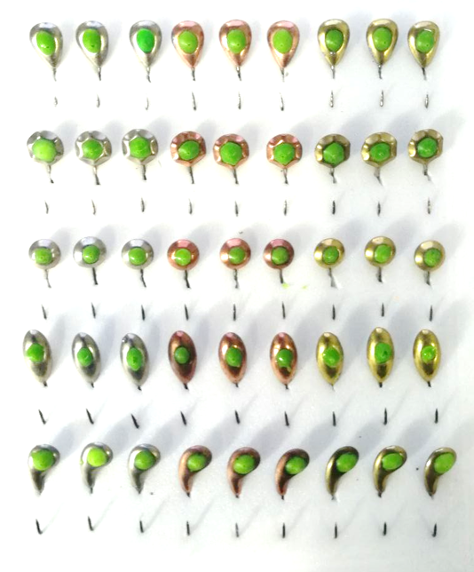 Мормышка РВС Mustad тип 5Ф/1 с фосфорной заливкой на планшете